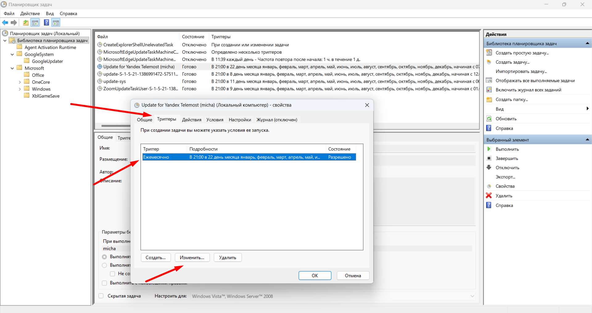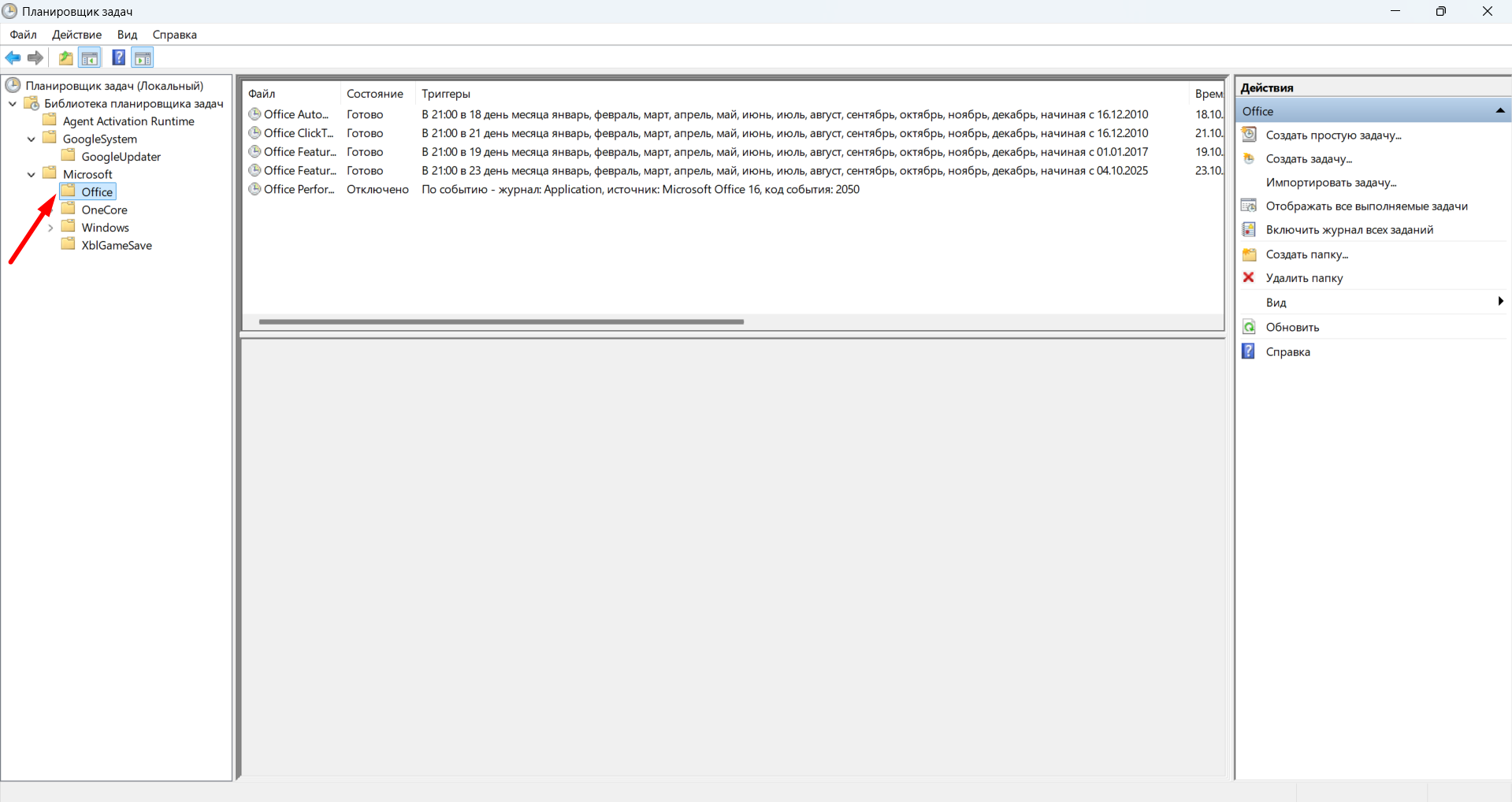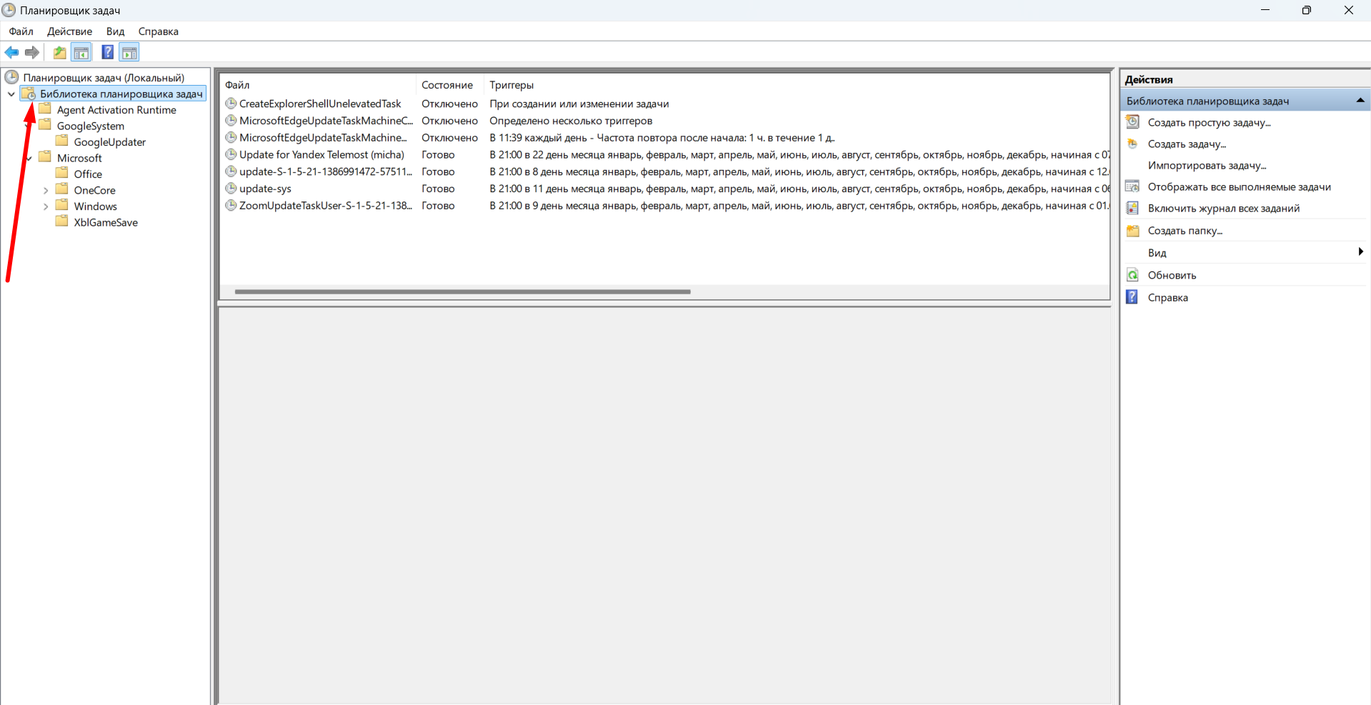 Начнем в папки "Библиотека планировщика задач"