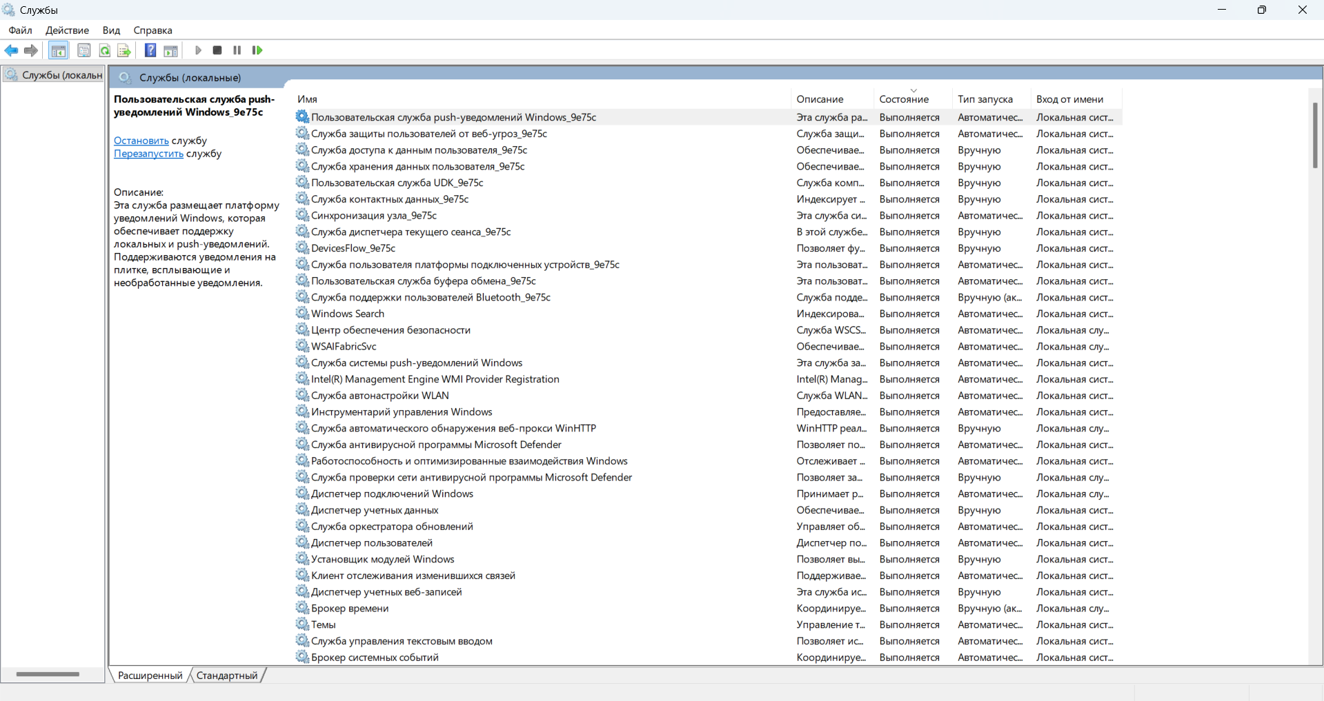 Важно: не отключайте системные службы — DHCP-клиент, DNS-клиент, Windows Update, Защитник Windows, Windows Audio.