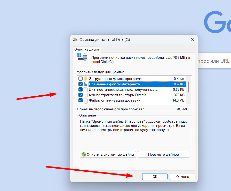 - Временные файлы Интернета