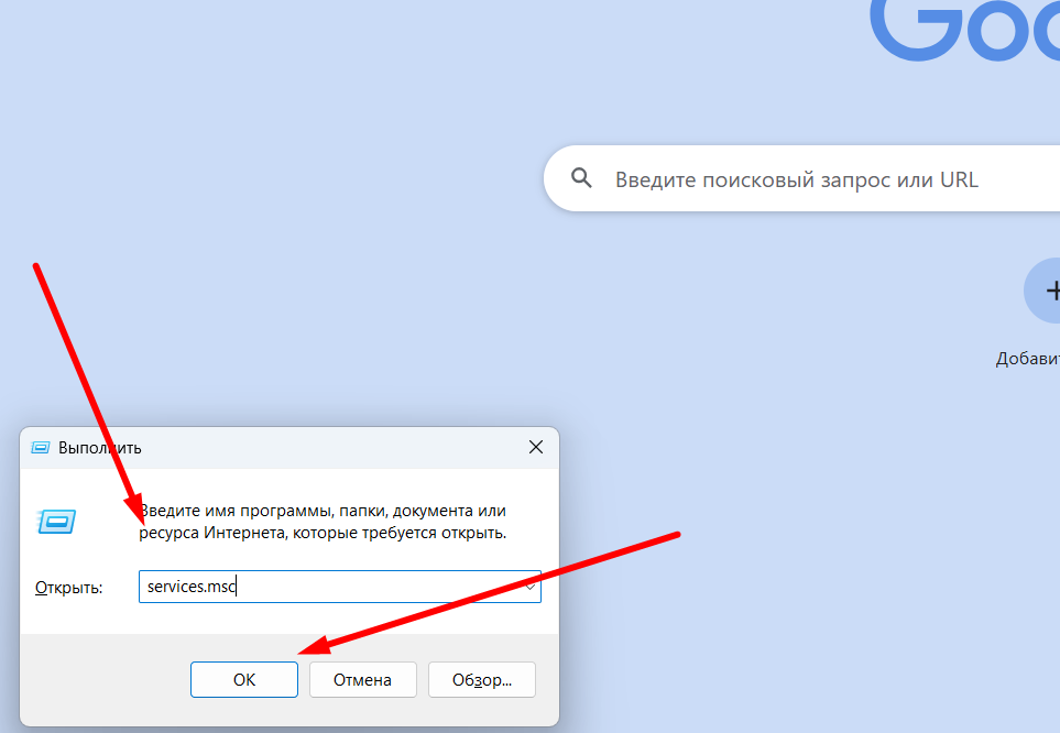 Нажмите Win + R → введите services.msc.