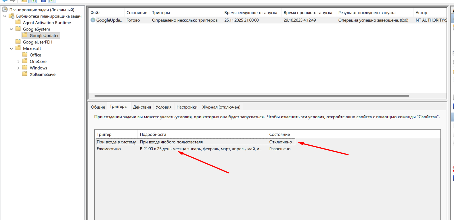 Также я поменял настройки в папке "Google Updater"