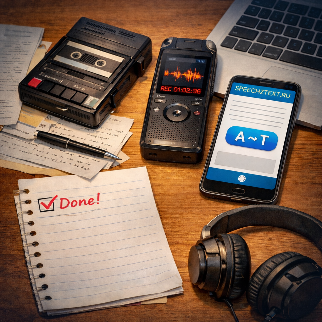 Это был конец 2000-х - начало 2010-х. У меня тогда был цифровой диктофон (а еще раньше - кассетный). Часы прослушивания, паузы, перемотки… Думаю, многие помнят этот процесс.