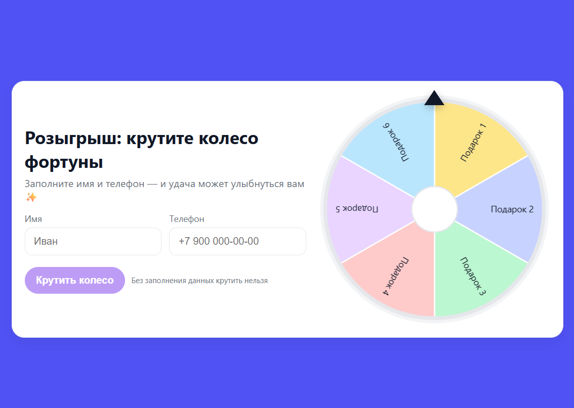 Так геймификация превращает обычный сбор заявок в азартное и вовлекающее взаимодействие. Такое решение позволяет собрать контакты, повысить конверсию и выделиться на фоне стандартных форм "оставьте телефон и получите скидку".