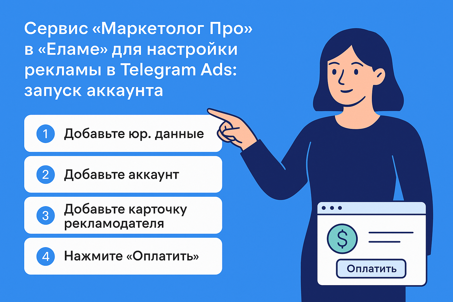 Сервис "Маркетолог PRO" в "Еламе" для настройки рекламы в Telegram Ads: запуск аккаунта