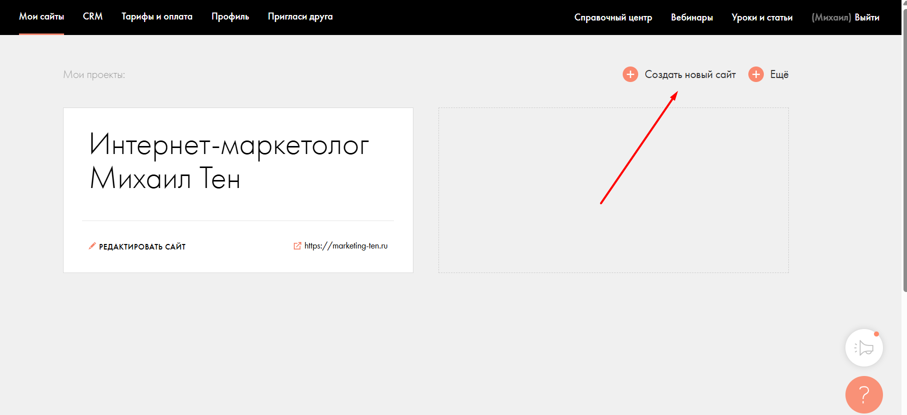 Чтобы подключить поддомен к Тильде, достаточно один раз пройти короткую настройку. Для лендинга с поддоменом необходимо создавать отдельный сайт. Для этого в интерфейсе Тильды нажмите "Создать новый сайт"
