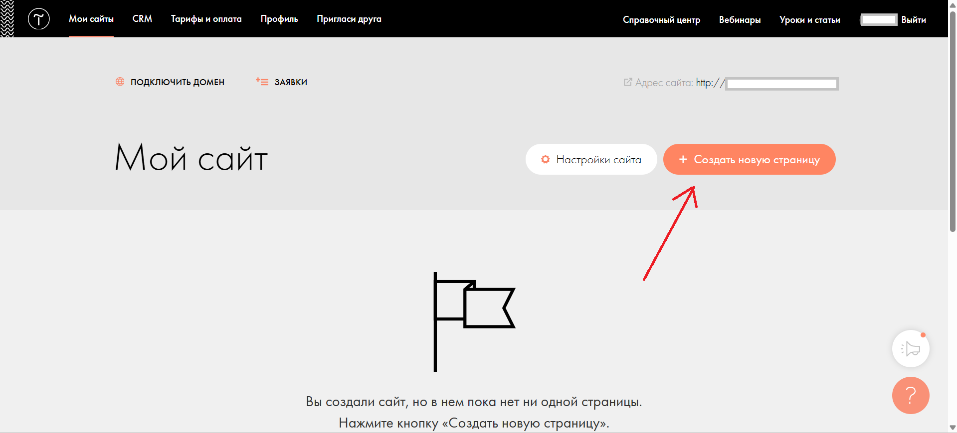 Обязательно создаете страницу внутри созданного сайта.