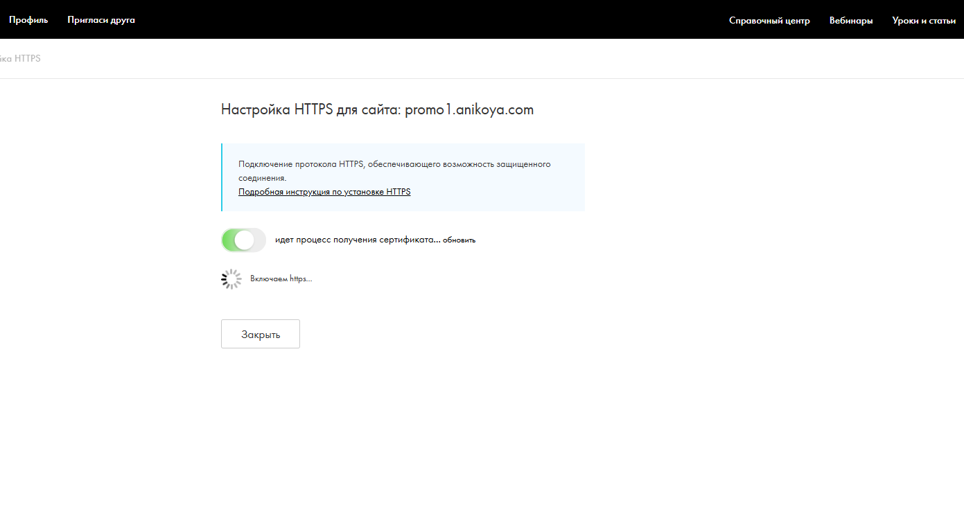 Дождитесь, когда протокол HTTPS перейдет в активное состояние. Ваш поддомен теперь полностью готов к работе!