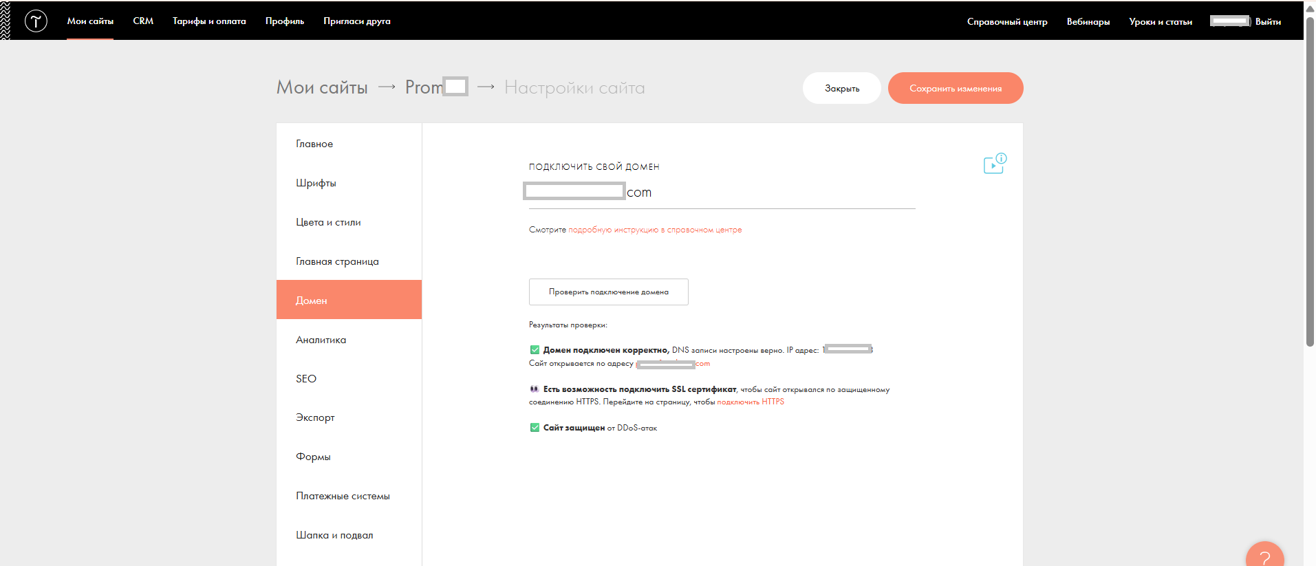 Если вы всё сделали правильно, то в настройках домена на Тильде вы увидите соответствующее сообщение.