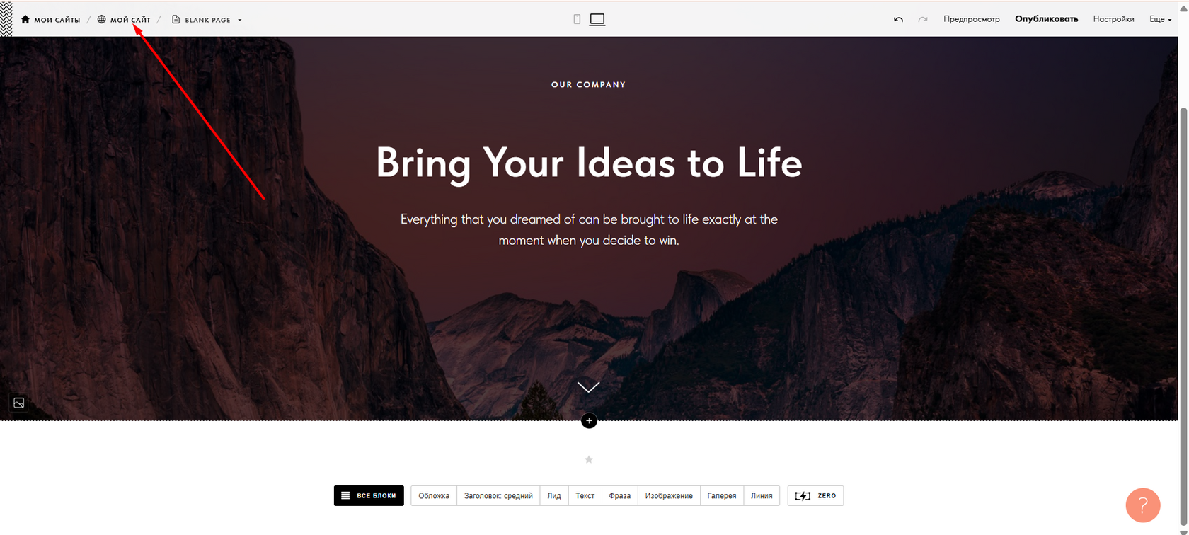 После этого вернитесь на уровень сайта.