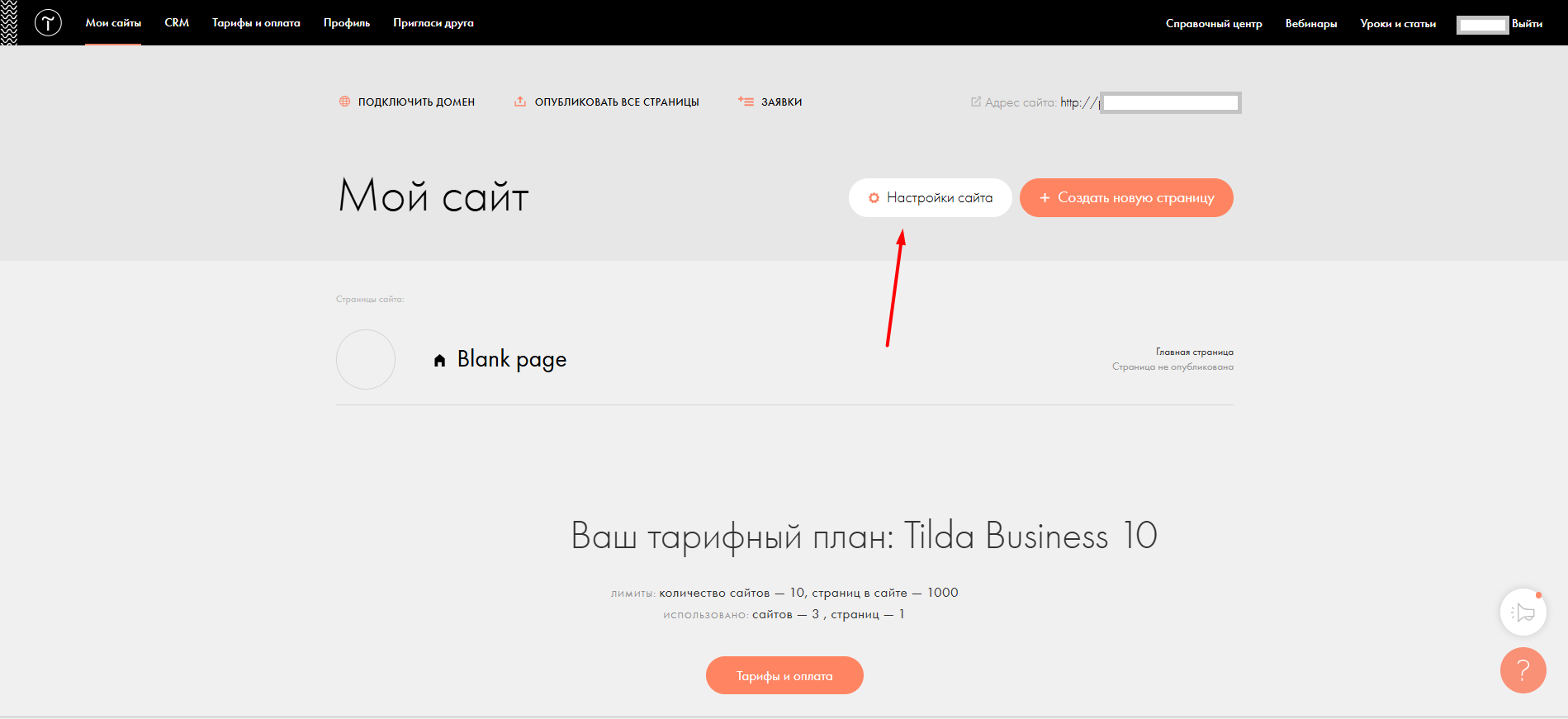Переходим в настройки сайта.