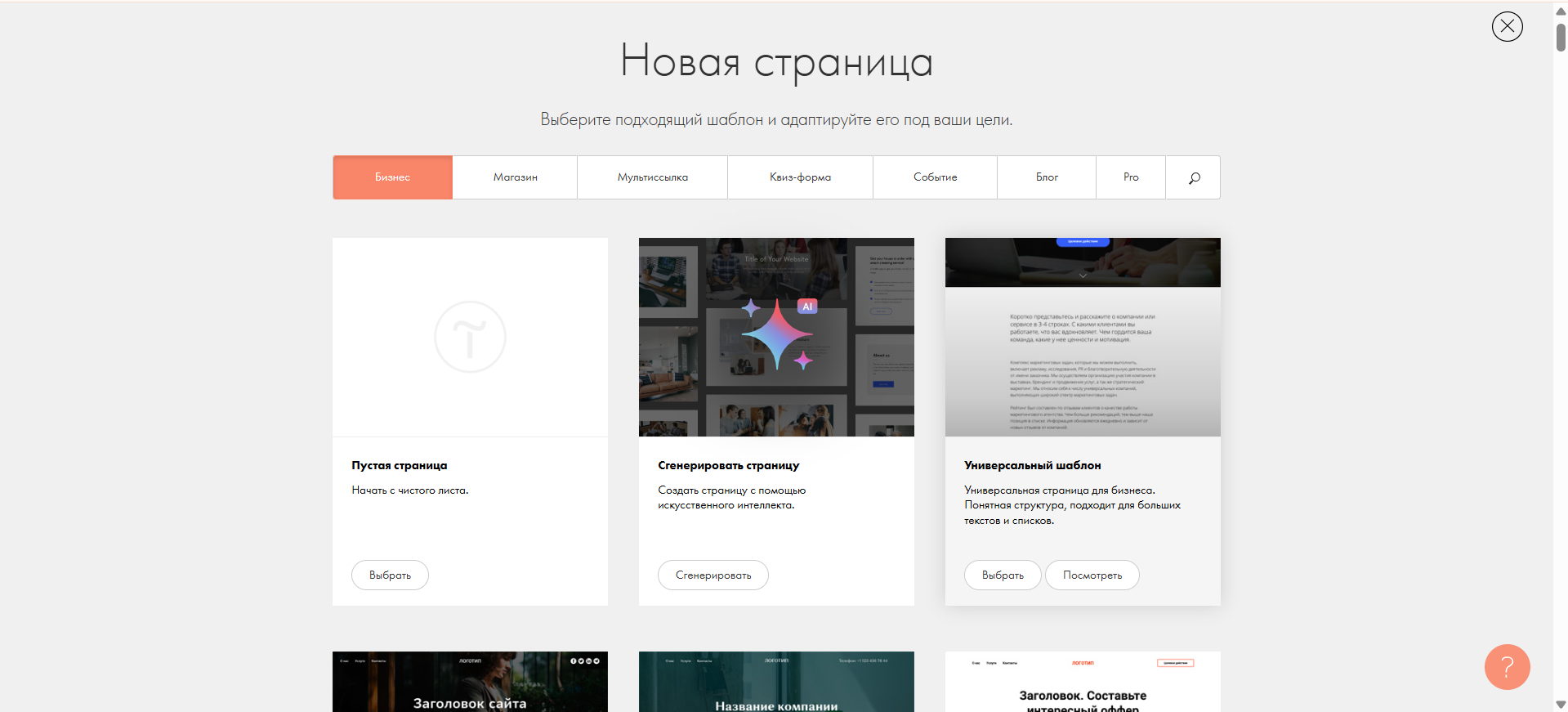 Выберите любой подходящий вам шаблон и после этого страница готова.